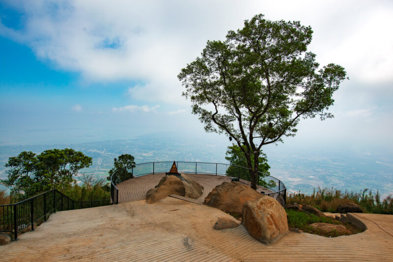 Cả một vùng đồng bằng mênh mông ngoại ô thành phố Tây Ninh với những cánh đồng lúa trải rộng thẳng tắp, vùng chuyên canh mãng cầu, từng thửa rau xanh mỡ màng như làm nền để tôn lên ngọn núi Bà Đen vốn là “nóc nhà Nam Bộ” với độ cao 986m. Nhìn từ xa, núi Bà Đen lúc thì nổi bật giữa nền trời xanh, lúc thì ẩn hiện dưới từng gợn mây bảng lảng lẫn trong sương. Ngọn núi như mê hoặc du khách, gợi những truyền thuyết tâm linh, ẩn chứa nhiều nét đặc trưng văn hóa của một vùng đất Tây Ninh đầy nắng, gió… Trải khắp từ chân núi lên đến đỉnh là quần thể kiến trúc gồm điện, chùa, miếu, tháp… đều mang những đặc trưng của văn hóa Phật giáo và tín ngưỡng dân gian. Đặc biệt, với du khách hành hương thì điểm đến trên núi Bà Đen sẽ là chùa Linh Sơn Tiên Thạch, nơi thờ Bà Đen. Tục truyền rằng, Bà Đen chính là nàng Đênh, con một vị quan ở đất Trảng Bàng, xuất gia đầu Phật rồi chết trên núi, sau linh hiển phù hộ giúp đỡ dân chúng trong vùng những lúc mất mùa đói kém hoặc gặp chuyện oan ức. Ngôi chùa được xây dựng từ thế kỷ 18, trải qua nhiều lần trùng tu, lần mới đây nhất là khánh thành vào năm 1997. Đây là ngôi chùa có kiến trúc hài hòa mang nhiều nét đẹp đặc trưng của kiến trúc đền chùa Việt Nam.